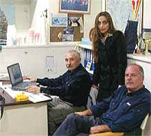 ![]() Informing the J/24 site using the Club's facilities: From Left: Web Skipper, Chrysa Tzanaki the "Aegean Airlines" preventative and Costas Liberakis, Jurie |