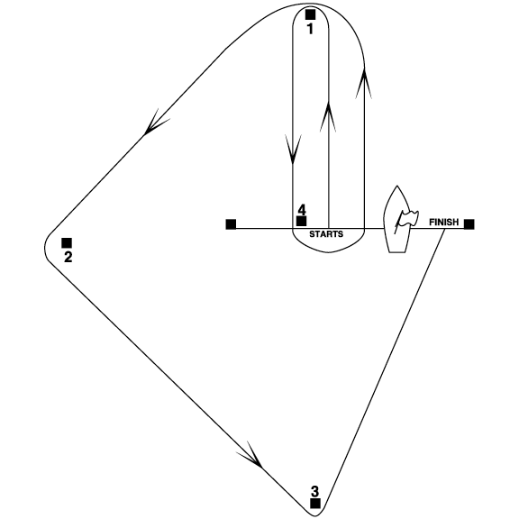 Ο τερματισμός θα είναι μεταξύ σκάφους της Επιτροπής Αγώνων που θα φέρει μπλε σημαία και σημαδούρας με κοντάρι και κόκκινη σημαία, από την δεξιά πλευρά του.